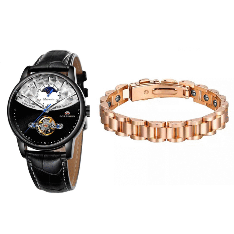 The Forsinning Moon Phase Mechanical Watch is being sold for GHs813 ($52), but for our Christmas gift offer, we have reduced it to GHs545 & to top it off and put a lasting smile on the face of our loved ones, we are giving out the Germanium Steel-Rose Gold plated Magnetic Therapy Bracelets worth 280GHC FOR FREE in addition. Too good to be true right?? 🙂
